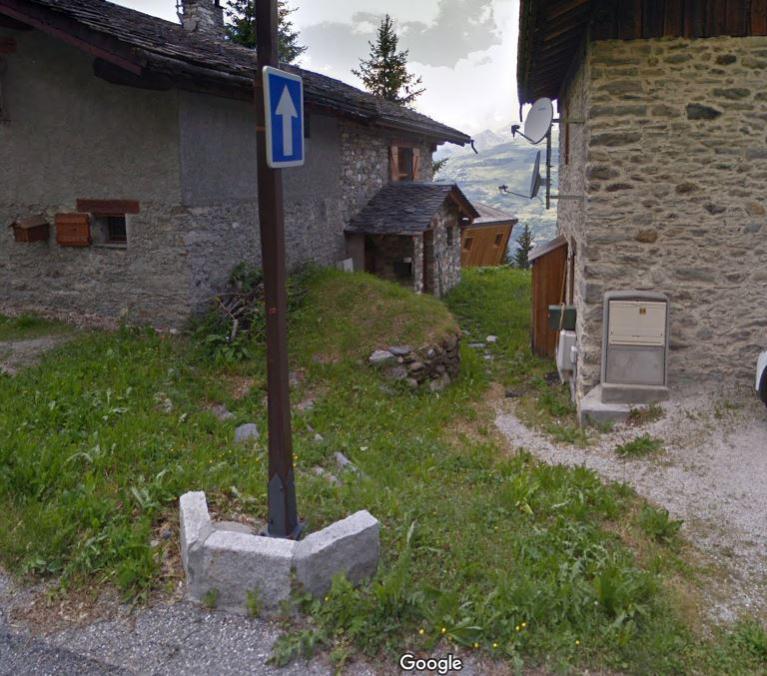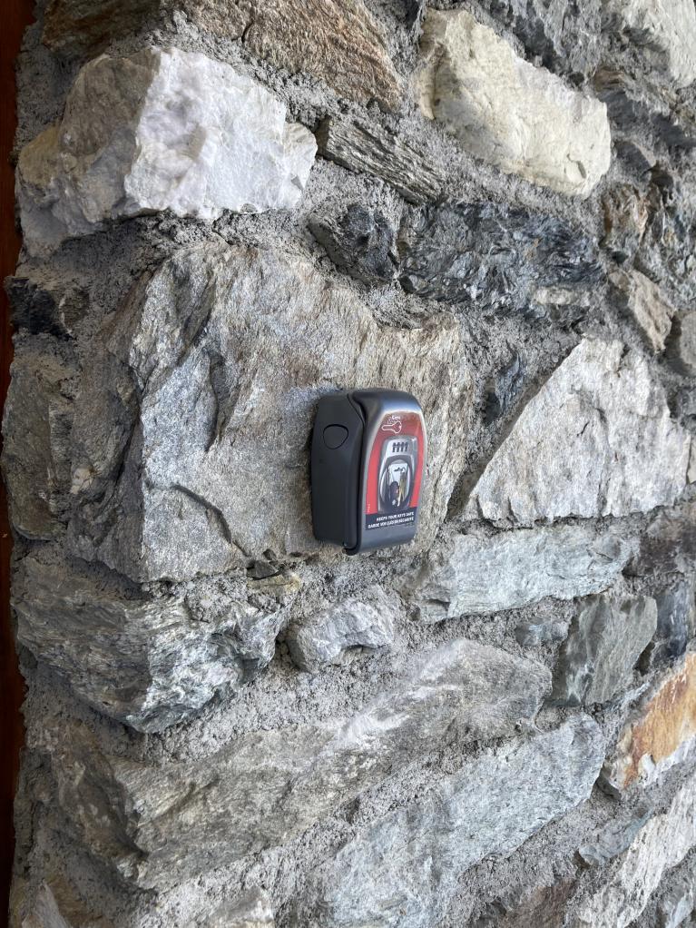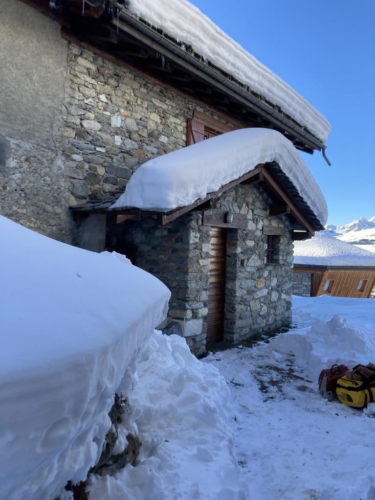 You then pass between the two chalets to reach our entrance hall; This is what you see in this photo on the left chalet.